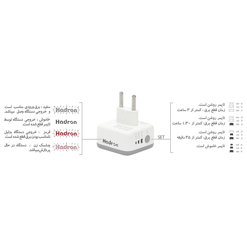مبدل و محافظ تایمردار هادرون مدل P103 دستگاهی چندمنظوره جهت حفاظت از وسایل و تجهیزات الکترونیکی است. این دستگاه امکان حفظ و مدیریت تجهیزات و وسایل الکترونیکی را فراهم میکند. این محصول به صورت همزمان،سه ویژگی کاربردی: محافظ برق، مبدل دوشاخه و تایمر قطع کننده را در اختیار قرار میدهد.محافظت چندگانه P103، با سرعت پاسخدهی بالای خود، از دستگاههای الکترونیکی در مقابل خطرات ناشی از نوسانات برق، اتصالی در خطوط برق رسانی و برق دو فاز محافظت میکند. همچنین، خروجی نوع یونیورسال آن، از انواع دوشاخههای برق (از جمله دوشاخههای رایج در ایران) پشتیبانی مینماید. تایمر قطعکننده سه زمانه و قابل تنظیم این دستگاه، به شما این امکان را میدهد که بازه زمانیِ برقراری جریان را مدیریت نموده و از آن در جهت جلوگیری از شارژ بیش از اندازه ادوات دارای باتری بهره ببرید. ابعاد کوچک مبدل، آن را برای حمل و یا استفاده خانگی مناسب میسازد.